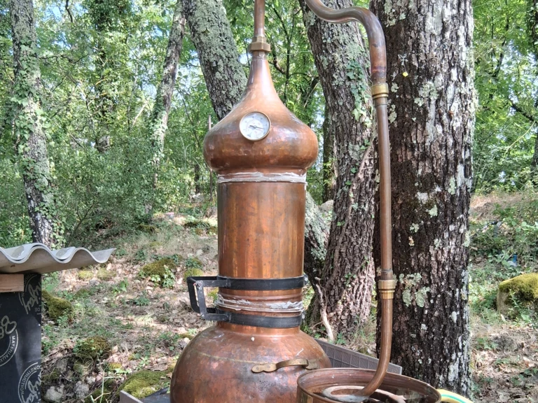 -Le mode de distillation : la durée, la pression de la vapeur et la matière composant l’alambic participent à l’obtention d’Hydrolats de très haute qualité. ICI la distillation se fait très lentement dans un alambic en cuivre, et seuls les 10 à 20 premiers litres de vapeur refroidie, c’est-à-dire les plus concentrés, sont mis à décanter pour séparer l’Hydolat (HA) de l’Huile essentielle (HE).
